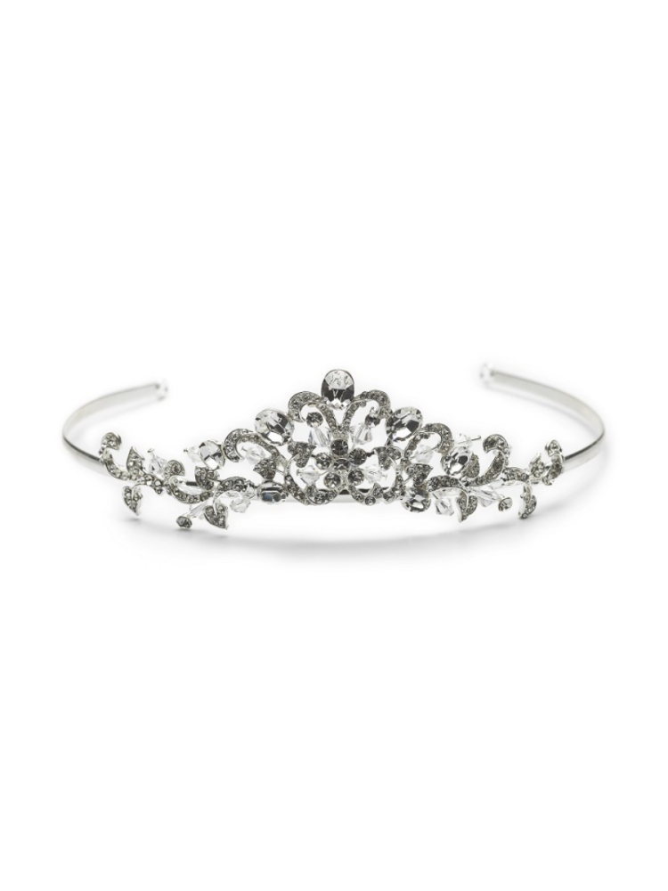 Tiara Eden to idealny dodatek do włosów dla klasycznej panny młodej. Jest pokryta pięknymi kryształami i rodem.