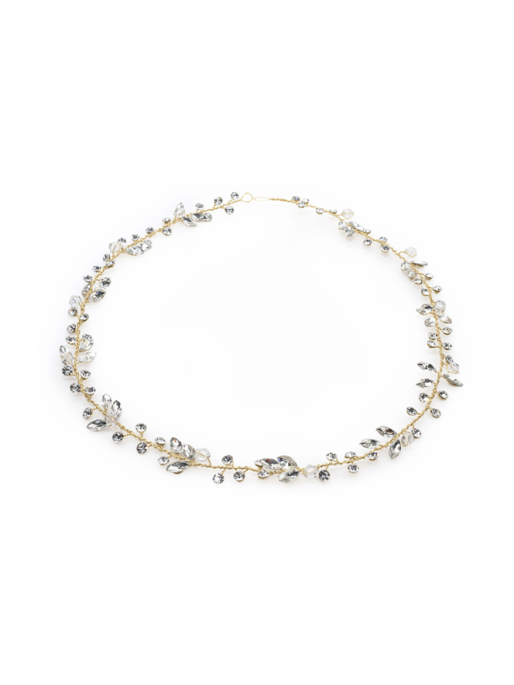Inspirowana tiarą opaska do włosów Gabi jest ozdobiona kryształami o różnych kształtach, które są osadzone w rozgałęzionej oprawie. Przyciąga uwagę, gdy idziesz do ołtarza.