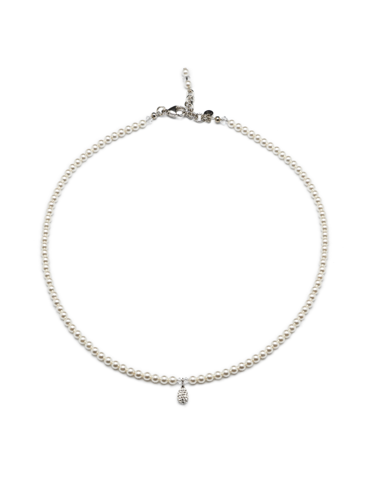 Naszyjnik wykonany jest z wysokiej jakości kryształowych koralików i zapięcia ze srebra próby 925 pokrytego rodem.