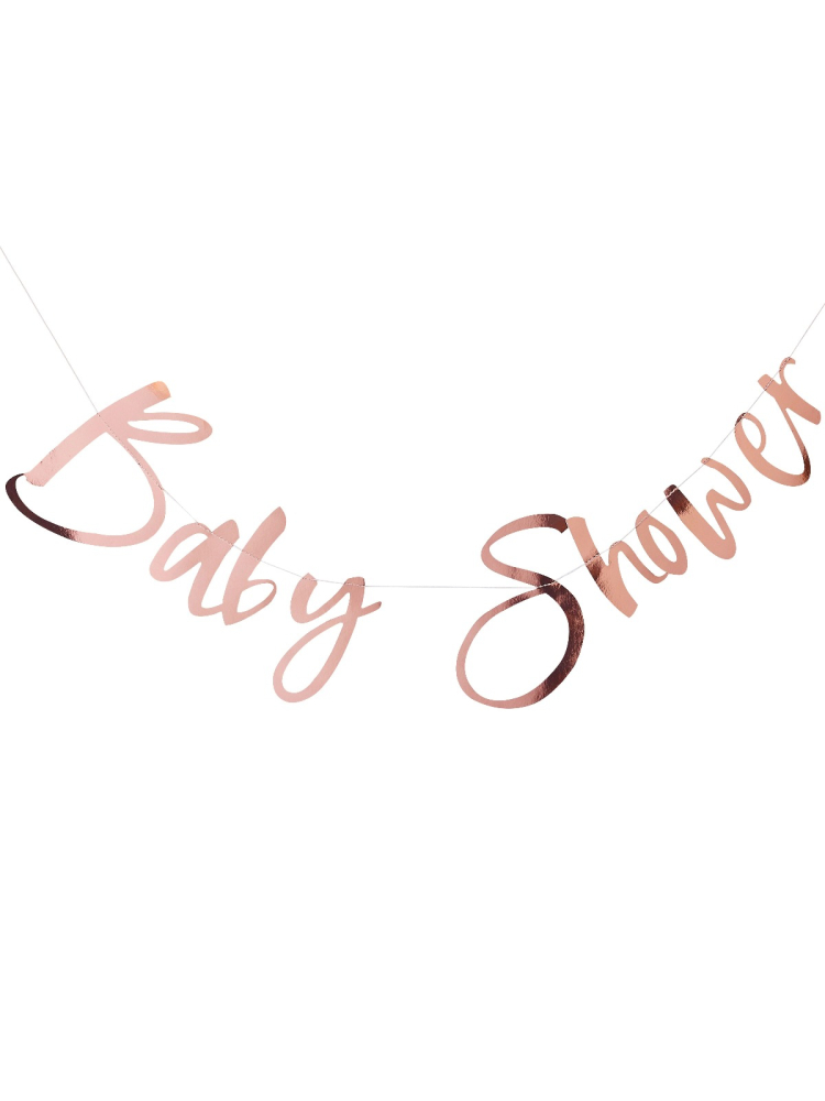 Ta girlanda w kolorze różowego złota jest niezbędna na baby shower.