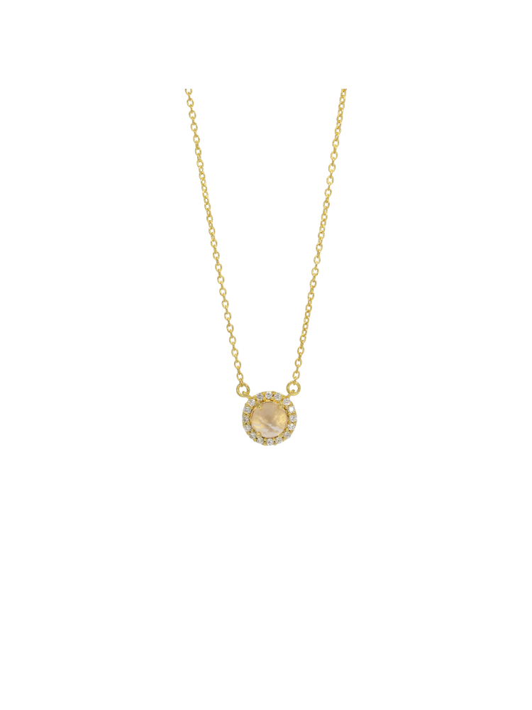Różane czasy: Gwiazdą tego naszyjnika jest okrągły wisiorek z kwarcu różowego, otoczony licznymi małymi kryształkami.