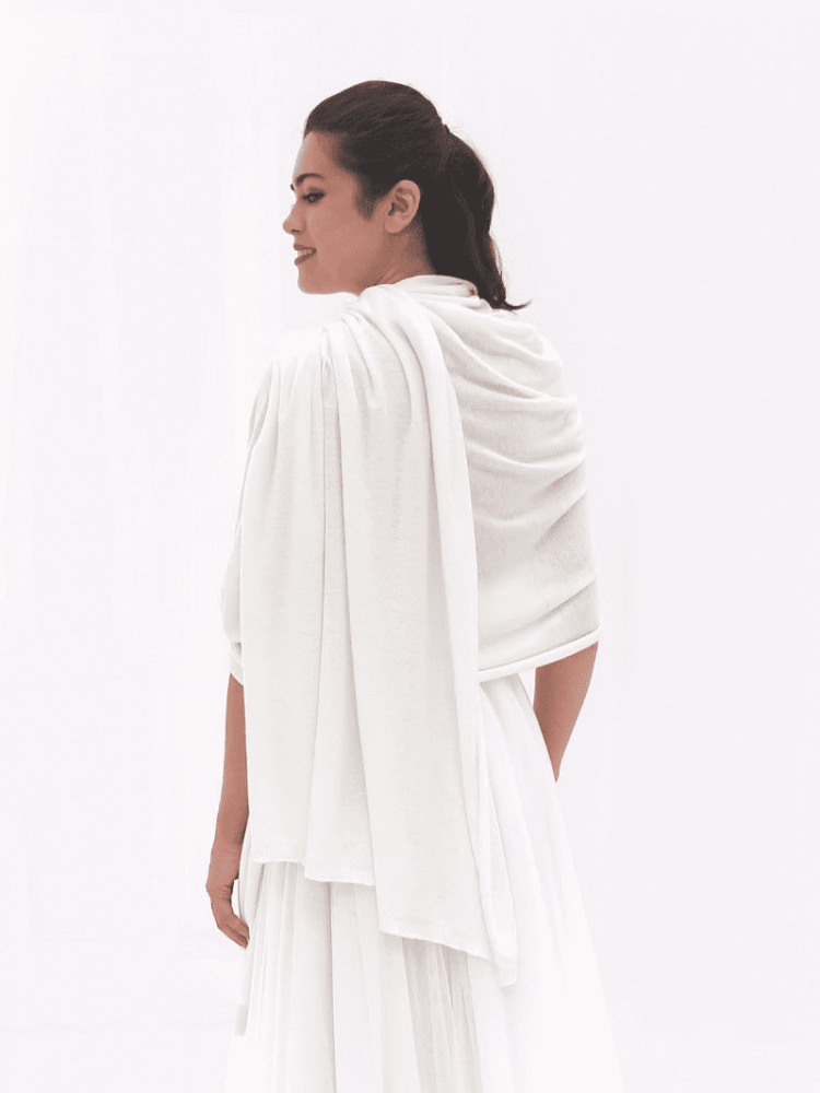 Stuła S189 w kolorze kości słoniowej jest dokładnie tym, czego szukasz! Stuła ta wykonana jest z tkaniny kompozytowej składającej się w 16% z wełny, w 20% z akrylu, w 20% z nylonu i w 44% z poliestru. Wymiary tego szala to 240 cm x 80 cm (94,4 x 31,5 cala). Neutralny kolor i design sprawiają, że ten szal jest doskonałym dodatkiem ślubnym.