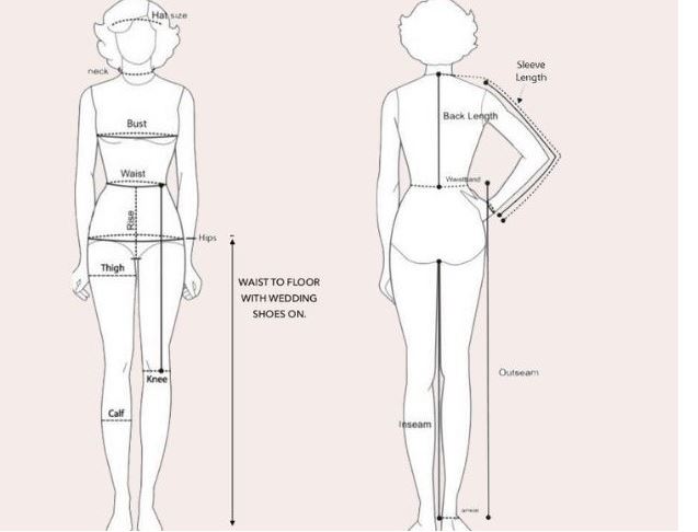 Długość sukni do podłogi: Zmierz od talii do końca butów ślubnych.