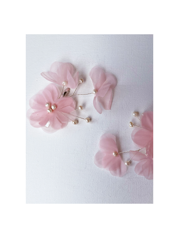 Srebrne spinki z kwiatami z tkaniny i perłami. Romantyczny i elegancki dodatek do Twojej fryzury ślubnej.